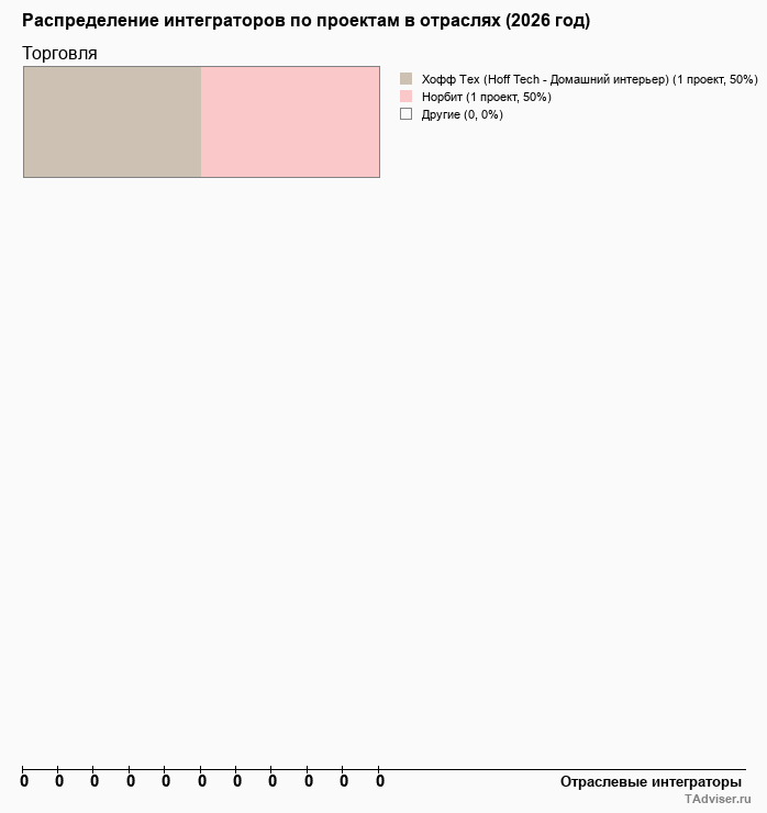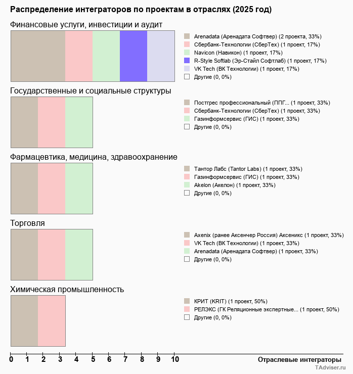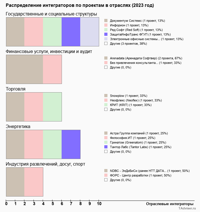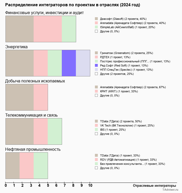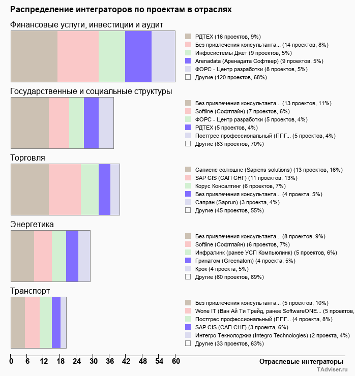Отраслевое распределение по количеству проектов внедрений