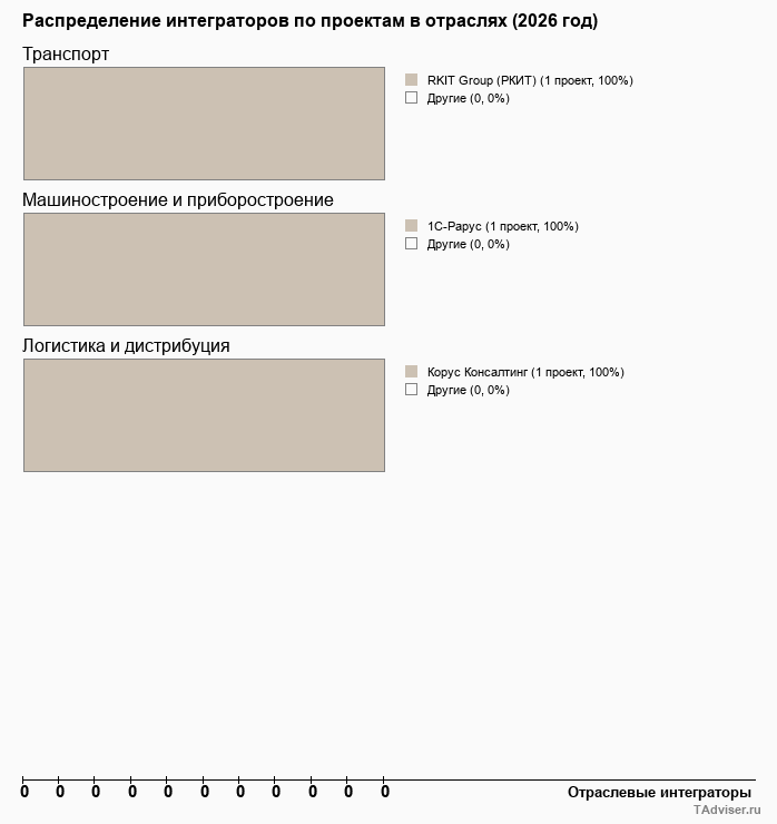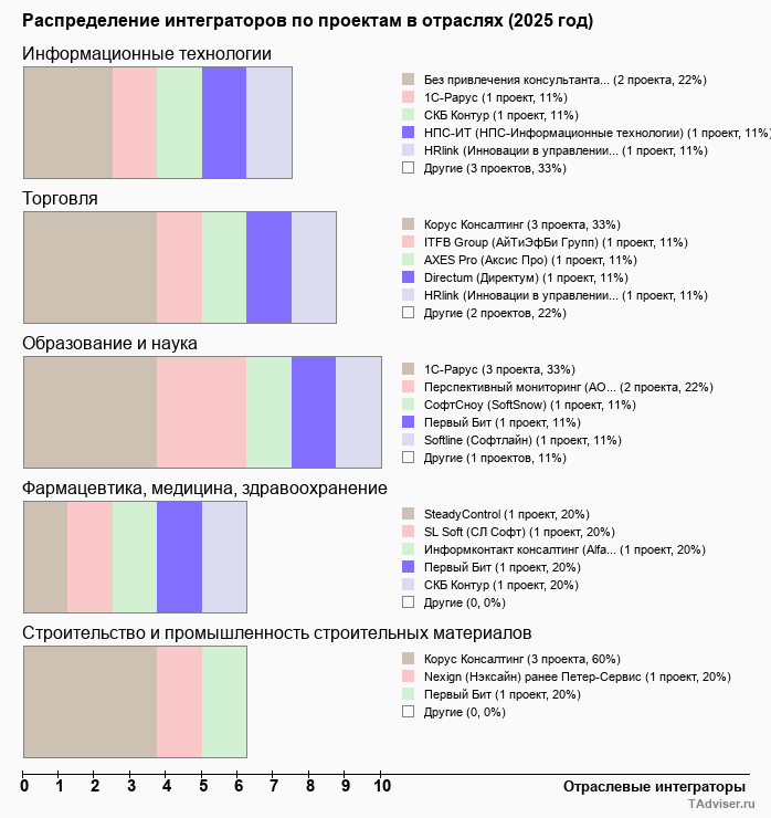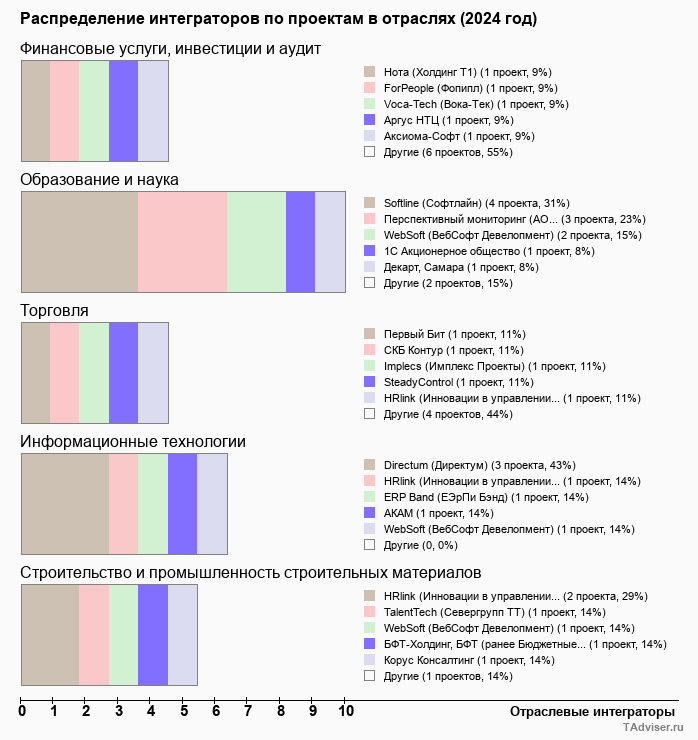 Отраслевое распределение по количеству проектов внедрений