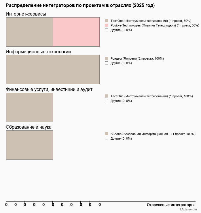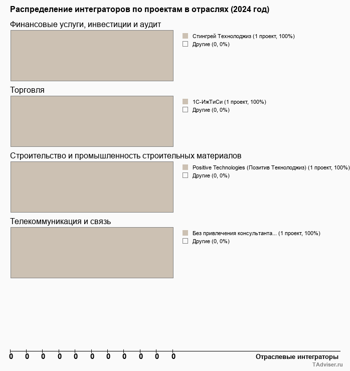 Отраслевое распределение по количеству проектов внедрений